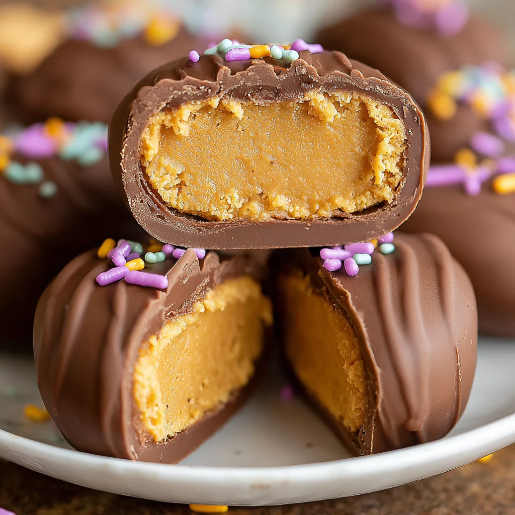 Arrange these homemade peanut butter eggs on a decorative platter alongside fresh berries and nuts for an elegant dessert spread. They pair beautifully with coffee, milk, or even a glass of dessert wine. Plan for 2-3 eggs per person, as their rich flavor makes them perfectly satisfying in smaller portions.