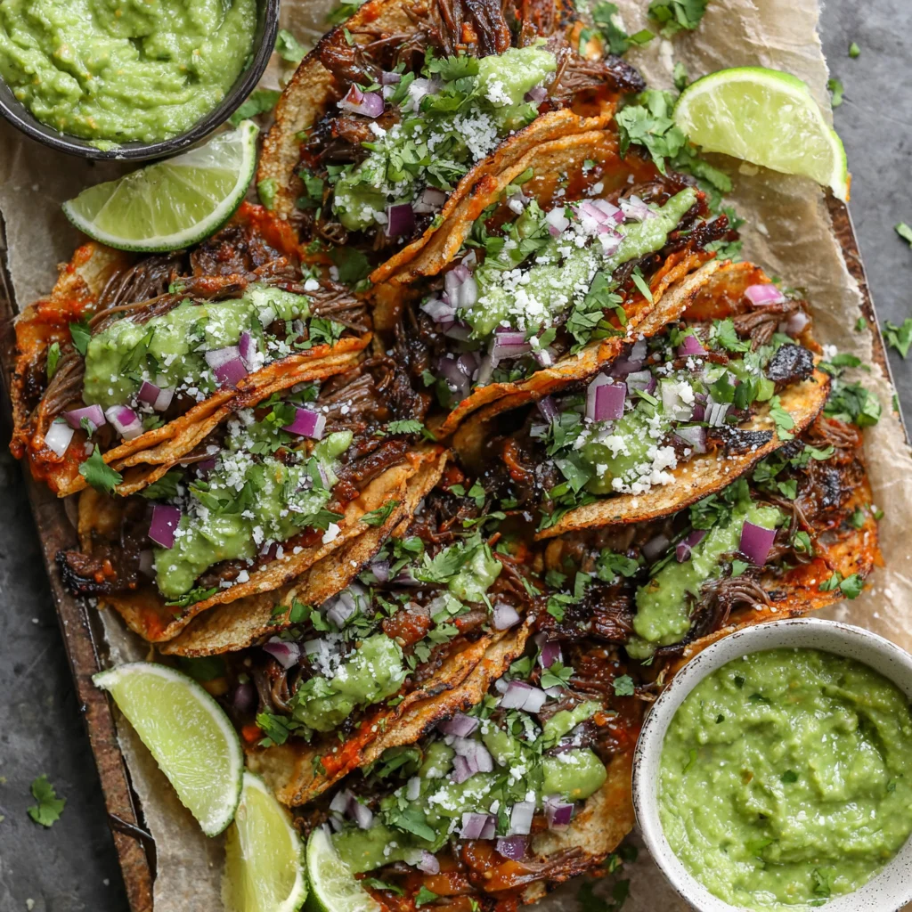 Serve these bold tacos alongside Mexican street corn, creamy avocado slices, or a simple lime-dressed coleslaw to balance the heat. A dollop of sour cream or Greek yogurt helps cool the palate. Plan for 2-3 tacos per person for a satisfying meal.