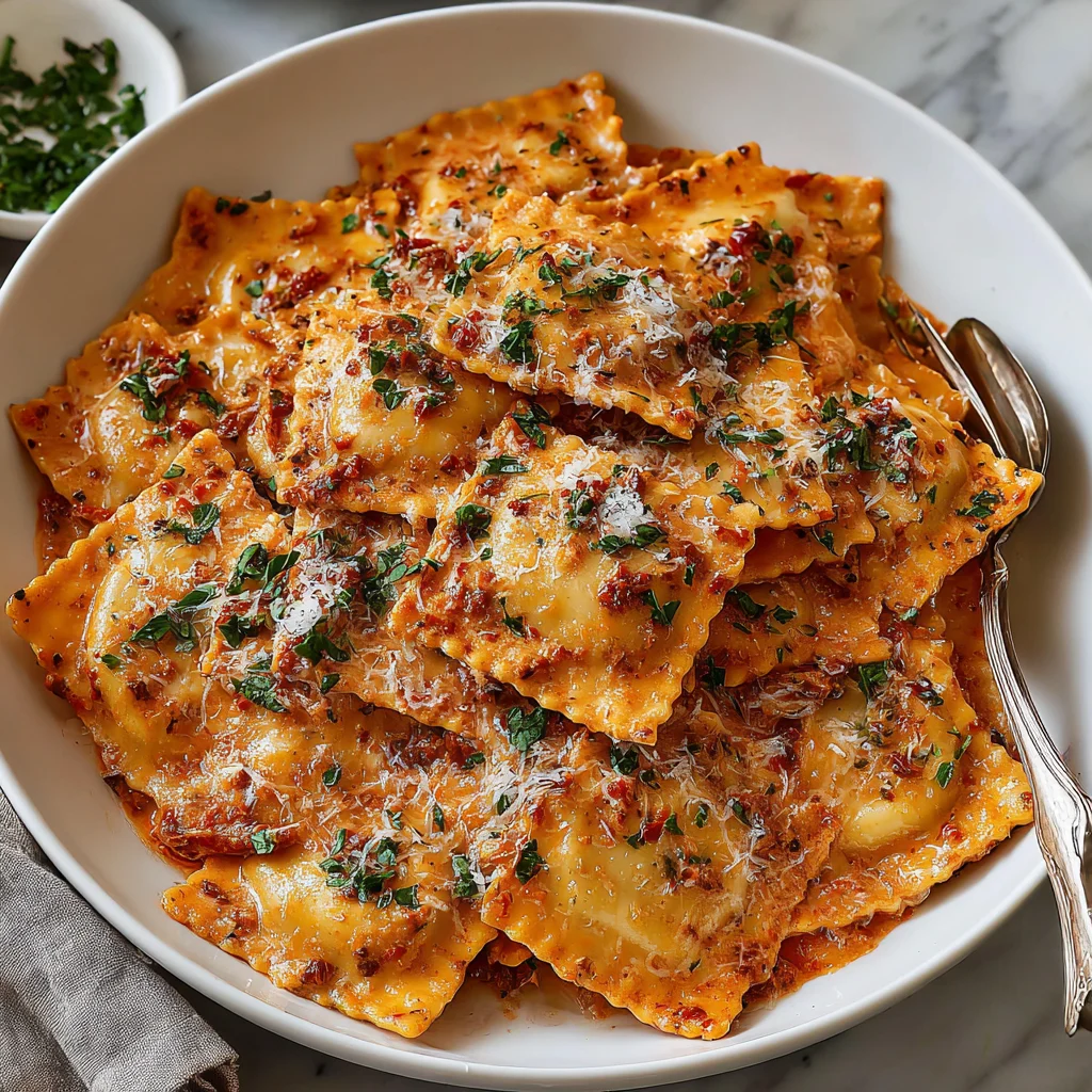 Sun-Dried Tomato Ravioli Recipe with Creamy Garlic Sauce